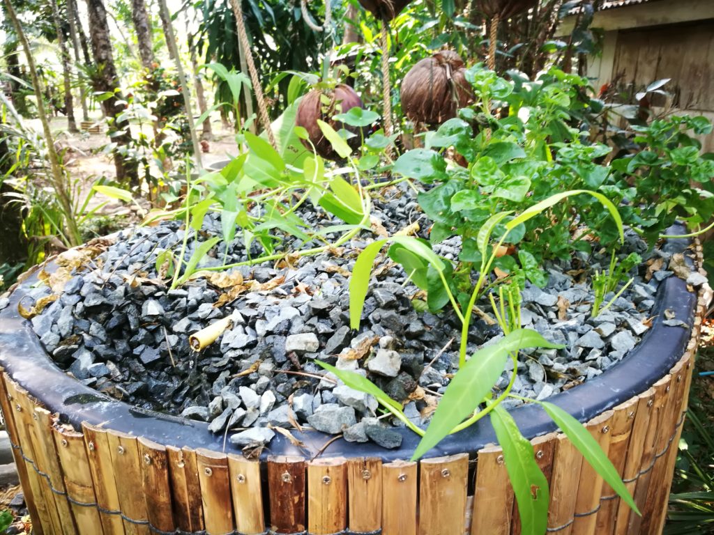 We weren’t planning on spending so much time at the Blue Lagoon Resort on koh Chang, Thailand, just a few weeks volunteering. And then the COVID19 lock down happened, we got stuck here… so we played Aquaponics! What can you do in this context that is more meaningful than developping systems for food resilience?